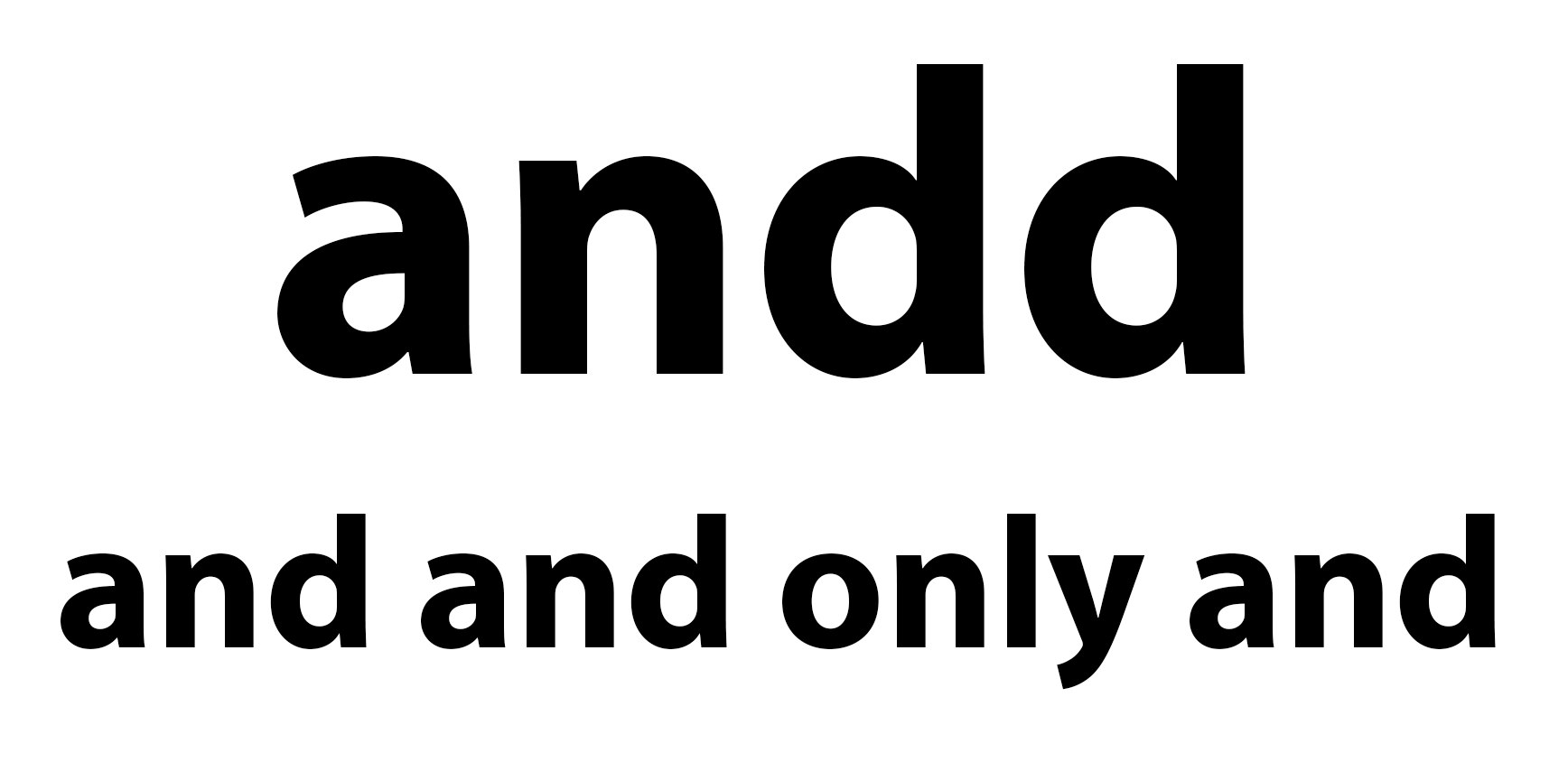 На изображении представлен текстовый мем на белом фоне. В верхней части крупным черным шрифтом написано слово "andd", где последняя буква "d" повторяется, что создает эффект преувеличения или акцента. Под ним, более мелким шрифтом, написано "and and only and", что переводится как "и и только и". Этот мем подчеркивает чрезмерное или повторяющееся использование союза "и", возможно, в контексте перечисления чего-либо или в грамматических ошибках, или просто как каламбур на частоту этого слова в языке.
