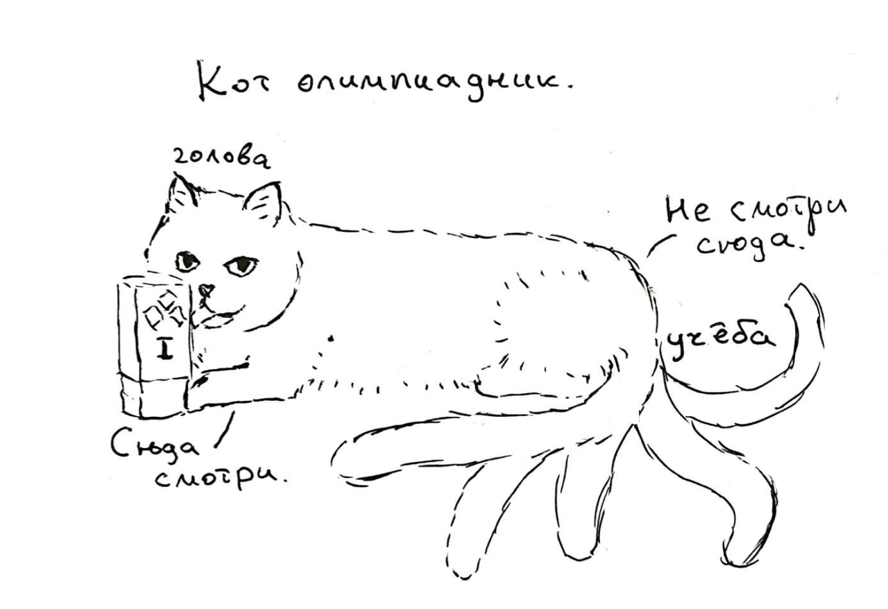 Кот олимпиадник. Голова. Сюда смотри. Не смотри сюда. Учеба.