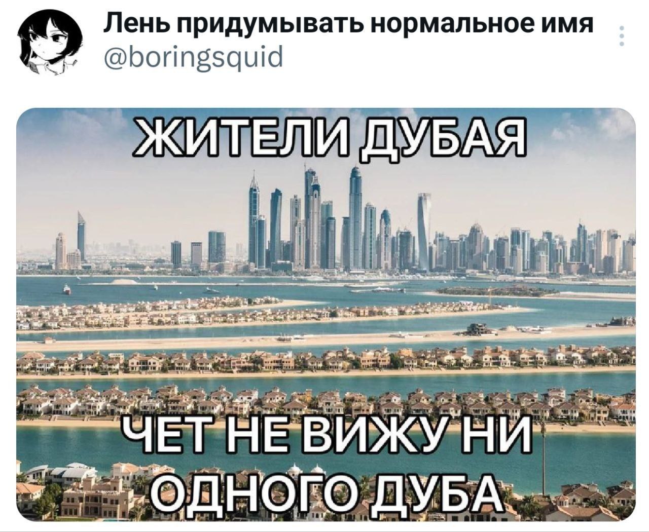 Лень придумывать нормальное имя. @boringsquid. Жители Дубая. Чет не вижу ни одного дуба.