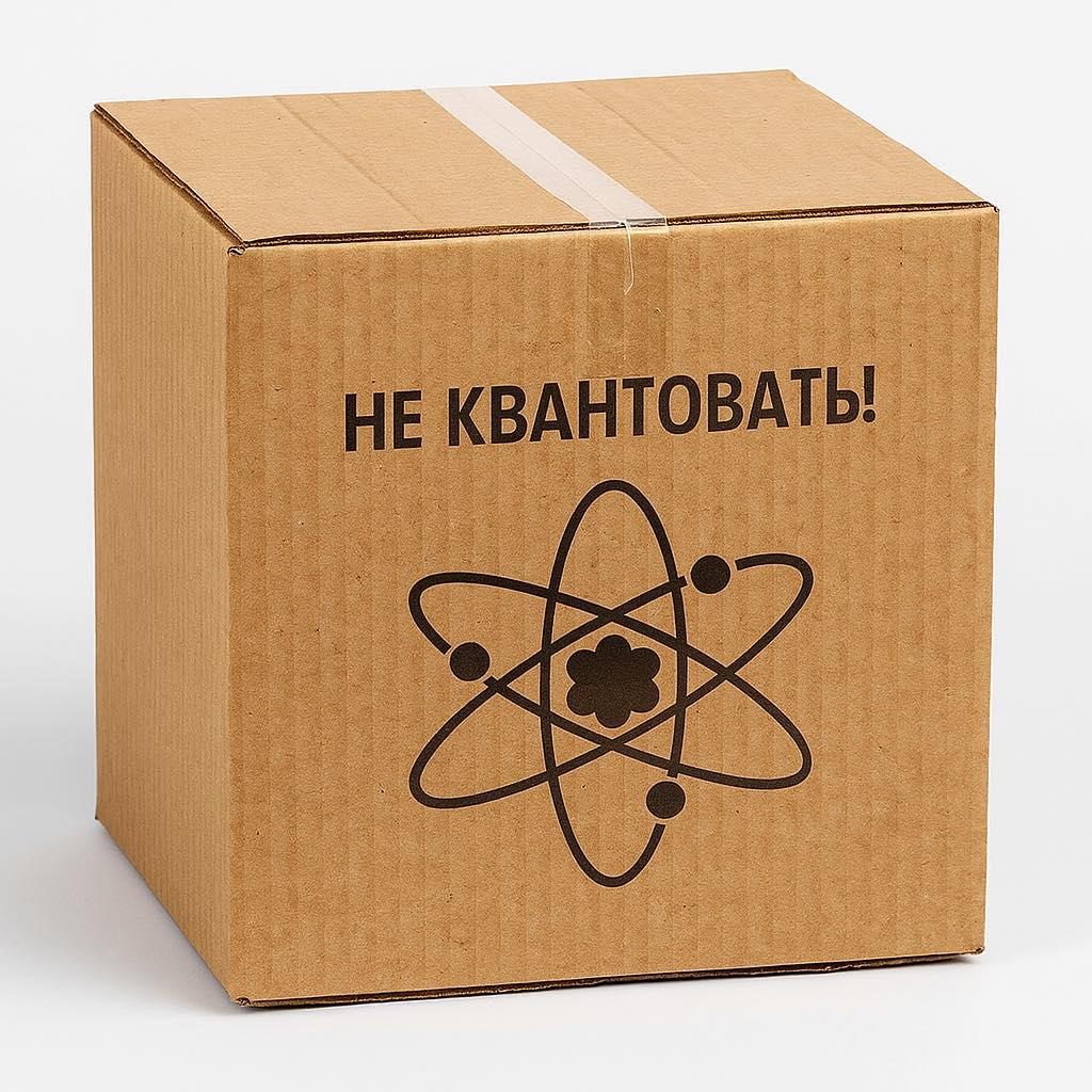 На изображении показана картонная коробка, заклеенная скотчем, с черной надписью «НЕ КВАНТОВАТЬ!» и символом атома. Надпись «НЕ КВАНТОВАТЬ!» (не квантовать) вероятно, является отсылкой к квантовой физике или каламбуром, что делает мем забавным для людей, знакомых с этой темой. Этот мем обыгрывает идею осторожного обращения с чем-то настолько важным или хрупким, что его нельзя подвергать квантованию.