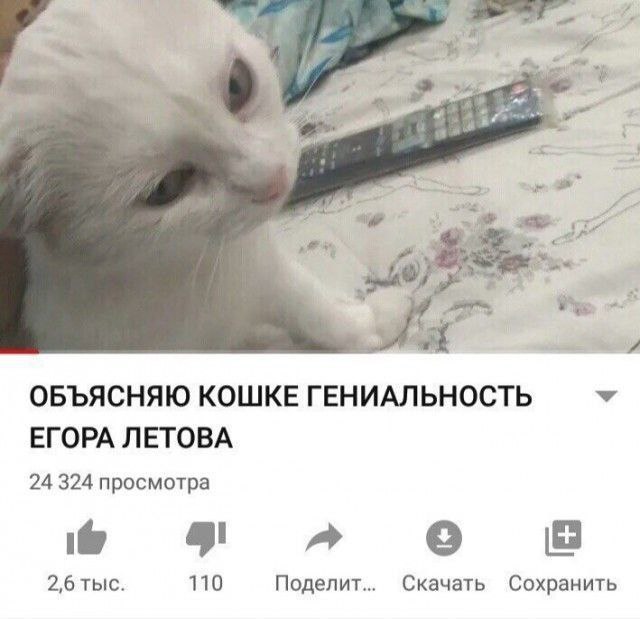 ОБЪЯСНЯЮ КОШКЕ ГЕНИАЛЬНОСТЬ ЕГОРА ЛЕТОВА. 24 324 просмотра. 2,6 тыс. 110. Поделит... Скачать. Сохранить.