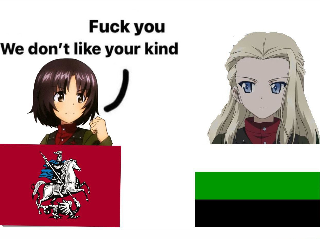 На меме изображены персонажи аниме Girls und Panzer. Слева расположена девушка с темными волосами и кулаком, выражающая недовольство. Над ней находится надпись «Fuck you, we don't like your kind», что переводится как «Пошел ты, нам не нравятся такие как ты». Под ней расположен флаг Москвы с изображением Георгия Победоносца на коне, поражающего змия. Справа изображена блондинка с голубыми глазами, которая выглядит спокойной. Под ней расположен черно-зеленый флаг, используемый Уральской Республикой.