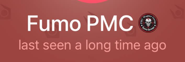 На мем-изображении на красном фоне белым текстом написано "Fumo PMC" и более бледным розовым цветом "last seen a long time ago". Справа от надписи "Fumo PMC" расположен круглый логотип ЧВК "Вагнер" с черепом и надписями "PMC Wagner Group" и "Группа Вагнера". Весь фон имеет красно-бордовый оттенок с полупрозрачными силуэтами, напоминающими значки. Этот мем, вероятно, отсылает к исчезновению или отсутствию некоего "Fumo PMC" после известных событий, связанных с группой "Вагнера".