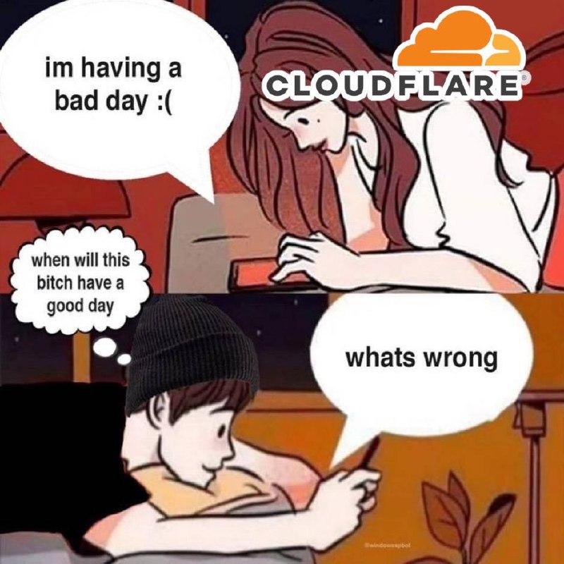 Im having a bad day :(. CLOUDFLARE. When will this bitch have a good day. Whats wrong.