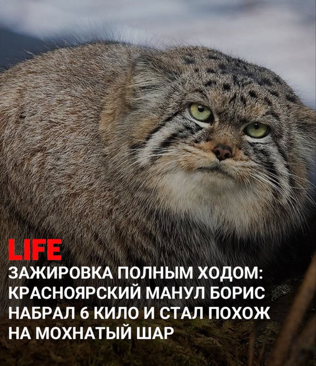 LIFE. Зажировка полным ходом: красноярский манул Борис набрал 6 кило и стал похож на мохнатый шар.