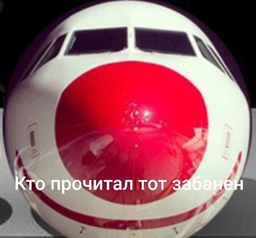 На изображении показан нос самолета в необычном ракурсе, напоминающем голову персонажа. Его белый корпус с большой красной круглой областью на передней части придает ему вид, будто это стилизованное лицо, похожее на самолет, окрашенный в цвета японского флага. Под «лицом» самолета крупными белыми буквами на русском языке написано «Кто прочитал тот забанен», что переводится как «Кто это прочитал, тот забанен». Этот текст добавляет юмористический и провокационный элемент к мему, играя на эффекте самоисполняющегося пророчества и интерактивности с пользователем, что часто используется в интернет-мемах для создания шуток и вызова реакции. Это создает ощущение игры или вызова для тех, кто видит этот мем.