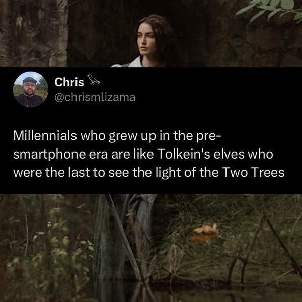 Chris. Millennials who grew up in the pre-smartphone era are like Tolkien's elves who were the last to see the light of the Two Trees.