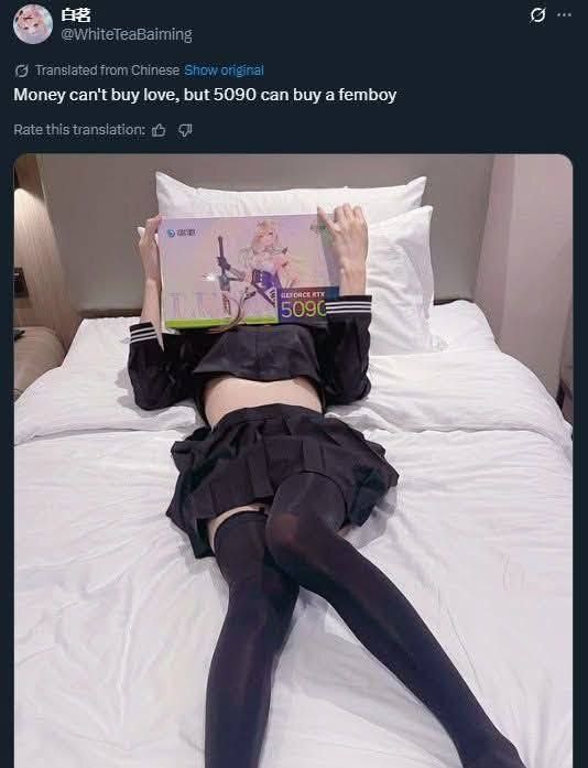Money can't buy love, but 5090 can buy a femboy. GeForce RTX 5090.