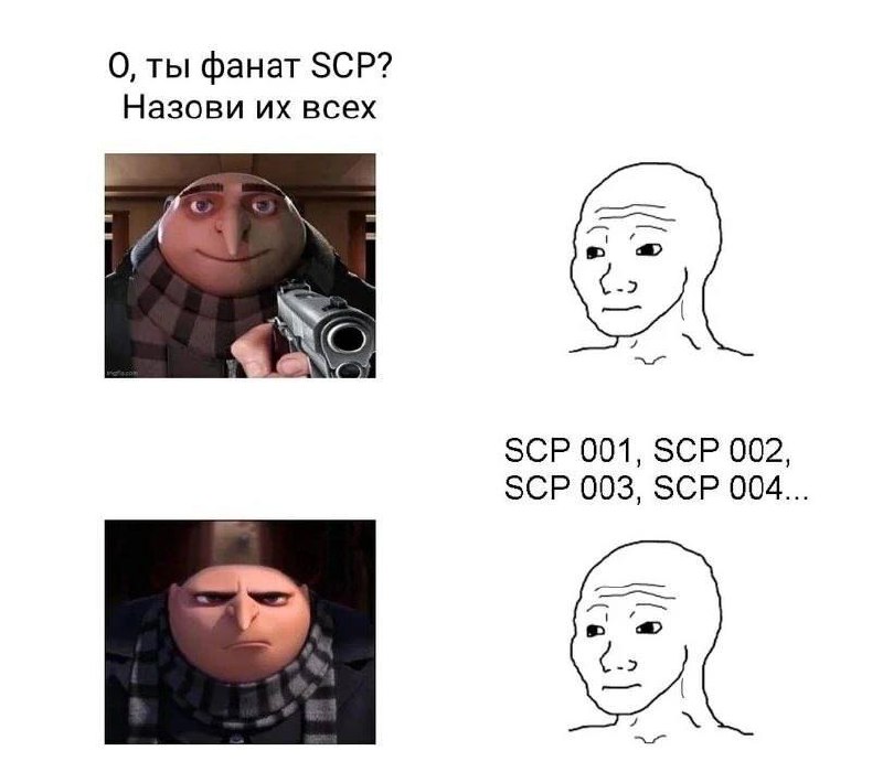 О, ты фанат SCP? Назови их всех. SCP 001, SCP 002, SCP 003, SCP 004...