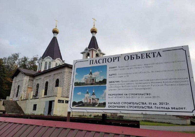 Паспорт объекта. Объект: храмовый комплекс: верхний храм пророка илии и нижний храм св. апп. Петра и Павла. Адрес: ленинградская область, всеволожский район, пос. Колтуши, д. 30. Заказчик: православная местная религиозная организация Приход храма святого праведного Иоанна кронштадтского д. Колтуши выборгской епархии Русской православной церкви (московский патриархат). Разрешение на строительство: № 47 47504313-363-2017 от 21 июня 2017г. Начало строительства: III кв. 2012г. Окончание строительства: господь ведает.