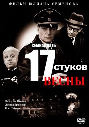 На постере советский фильм «Семнадцать мгновений весны». На переднем плане в центре кадра Штирлиц в нацистской форме. Слева внизу Мюллер, справа – Шелленберг. Это один из самых известных и популярных советских фильмов о Великой Отечественной войне. Фильм рассказывает о советском разведчике, работающем в Германии во время Второй мировой войны.