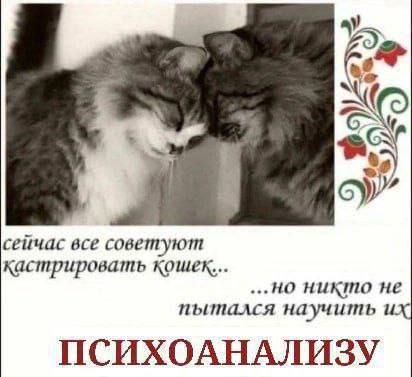 Сейчас все советуют кастрировать кошек… …но никто не пытался научить их ПСИХОАНАЛИЗУ