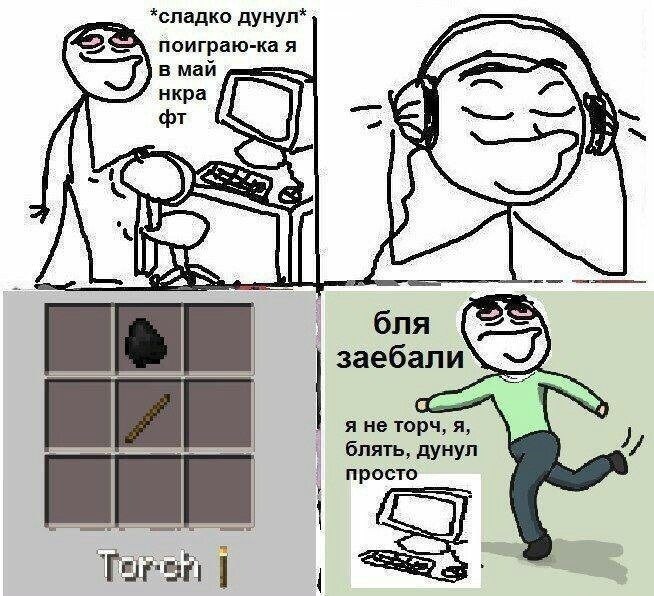 *Сладко дунул* поиграю-ка я в Майнкрафт. Бля, заебали. Я не торч, я, блять, дунул просто. Torch.