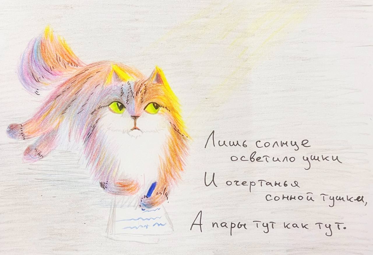Лишь солнце осветило ушки. И очертанья сонной тушки, а пары тут как тут.