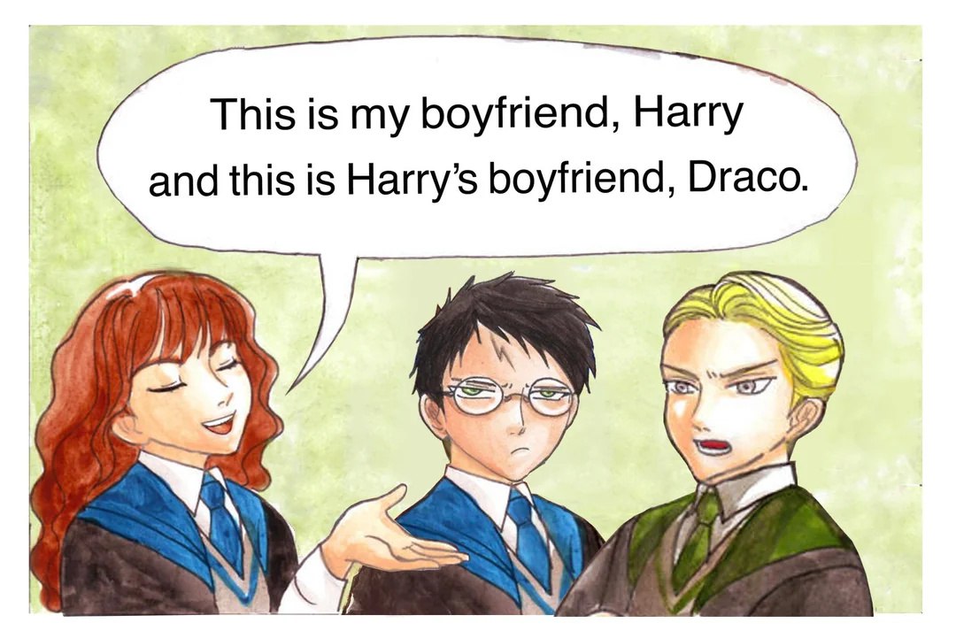 This is my boyfriend, Harry and this is Harry's boyfriend, Draco.