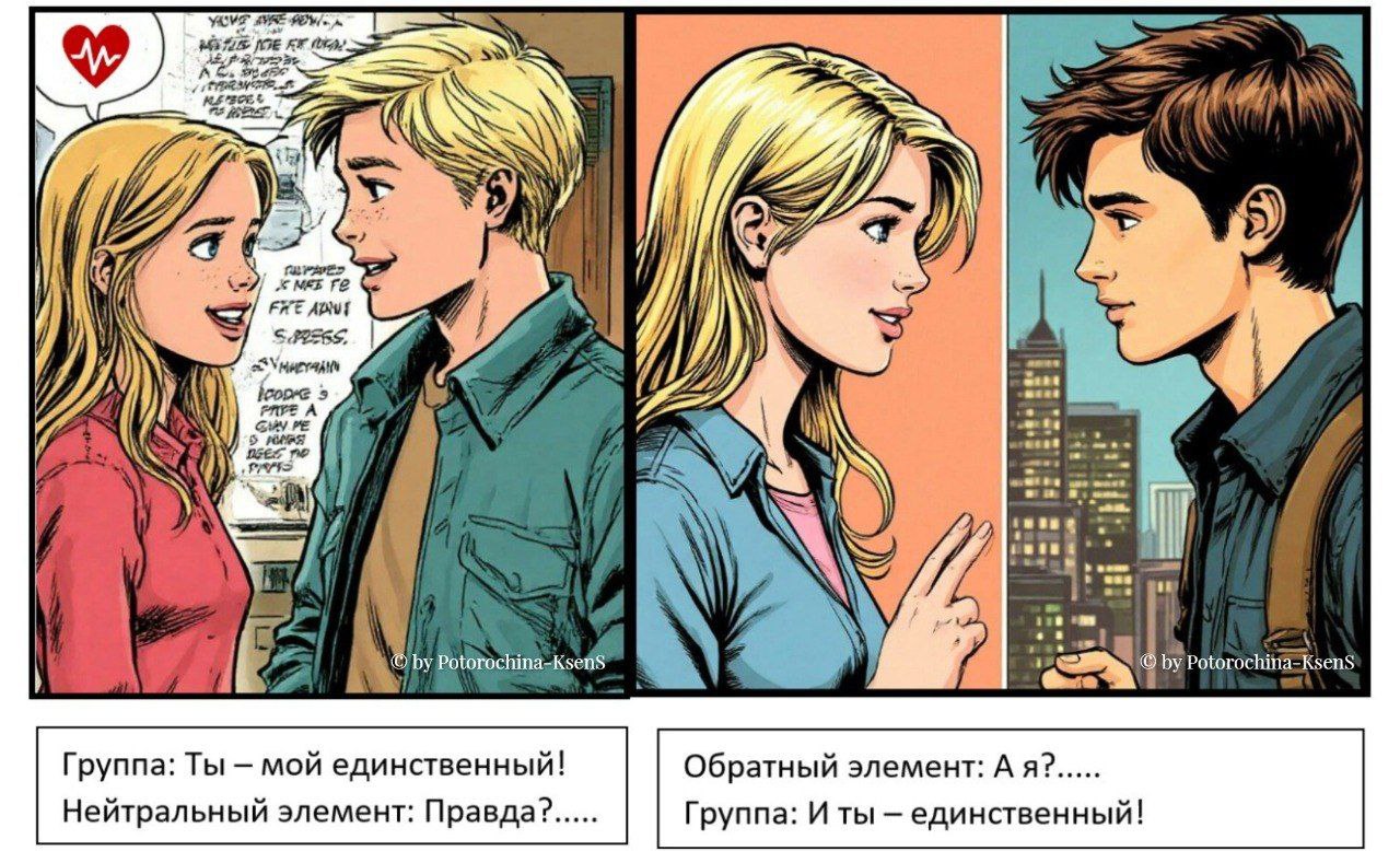 Группа: Ты – мой единственный! Нейтральный элемент: Правда? Обратный элемент: А я? Группа: И ты – единственный!