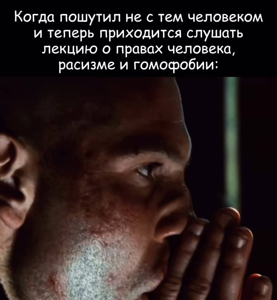 Когда пошутил не с тем человеком и теперь приходится слушать лекцию о правах человека, расизме и гомофобии: