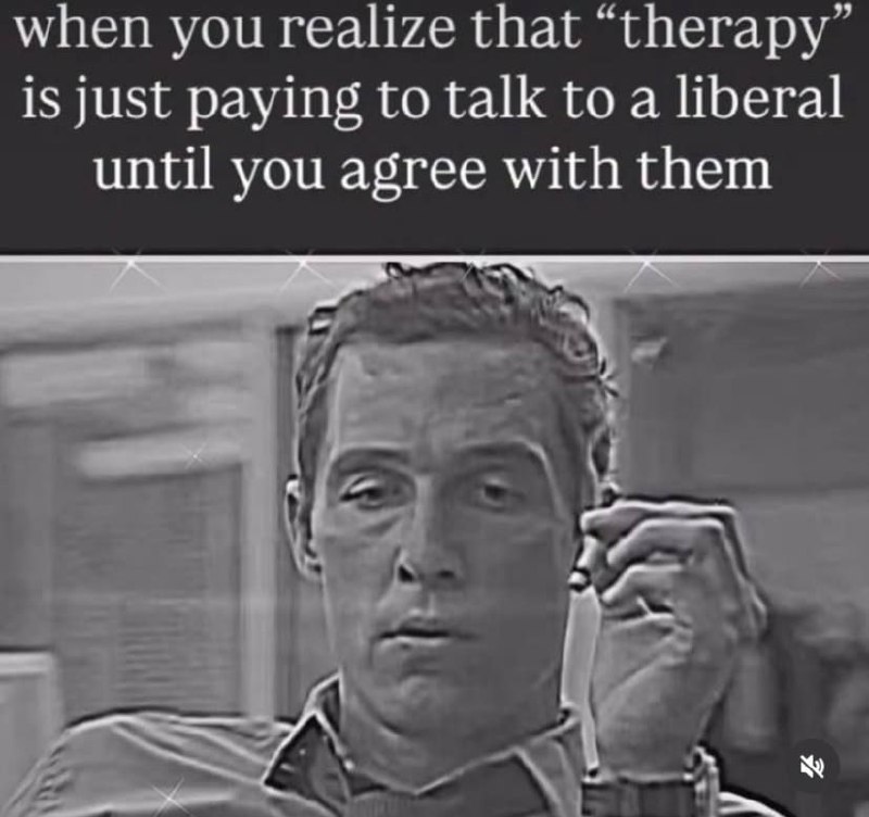 When you realize that "therapy" is just paying to talk to a liberal until you agree with them.